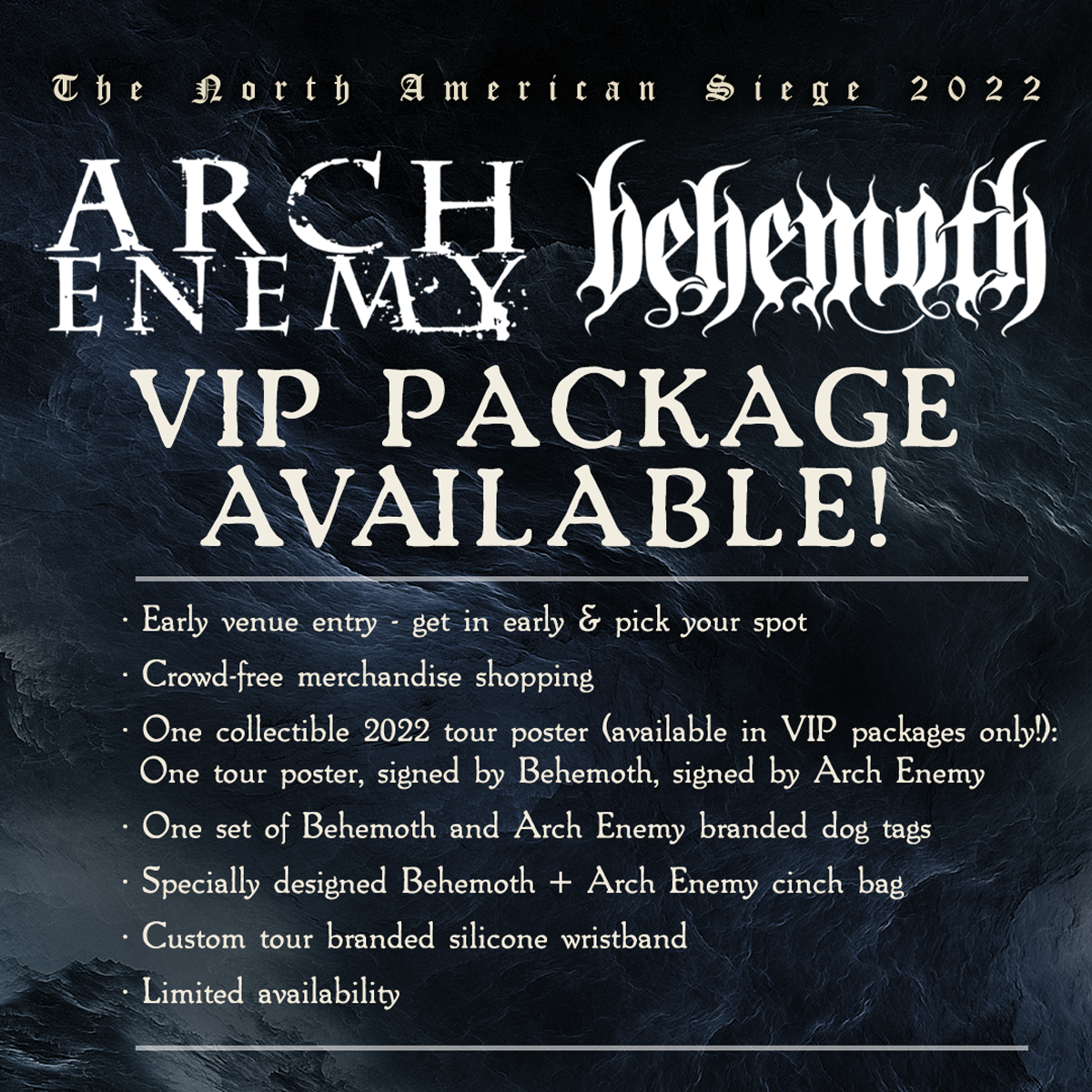Due to high demand, we added VIP upgrades to our upcoming NORTH AMERICAN TOUR with #Behemoth, #NapalmDeath & #UntoOthers!