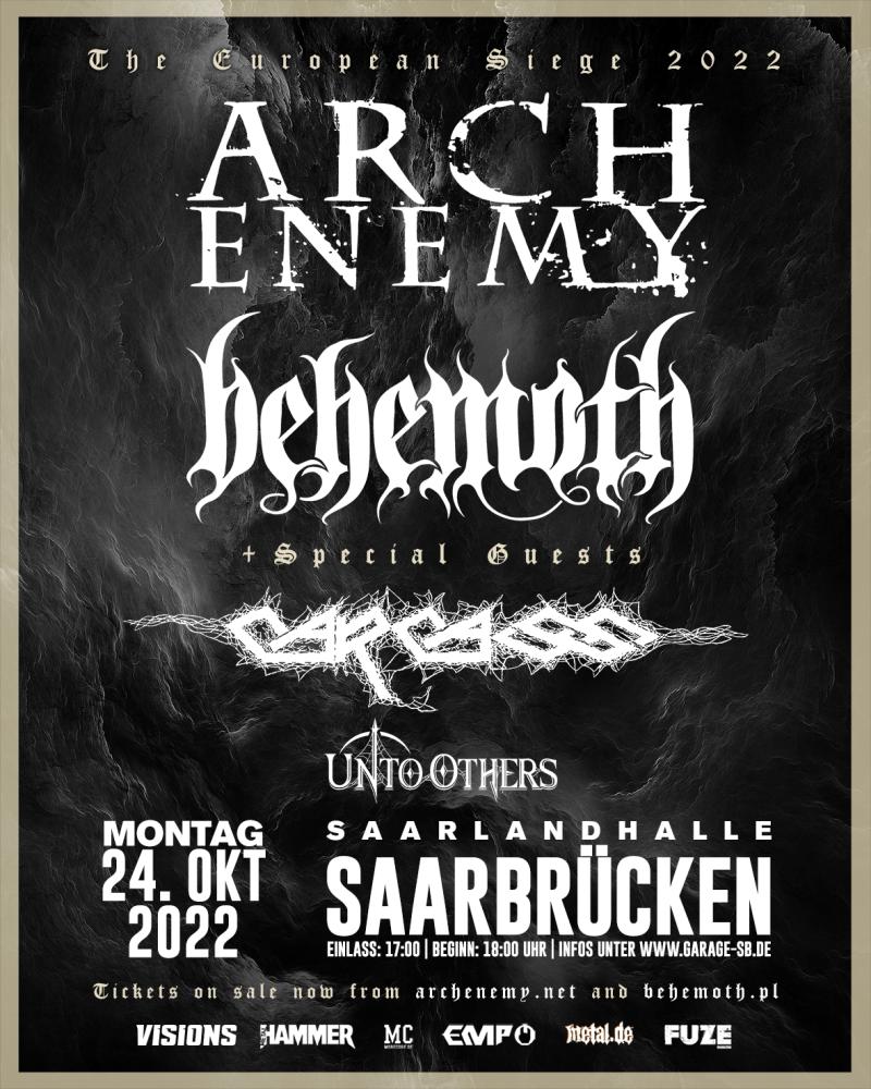We're happy to announce that we just added a new show to our EUROPEAN TOUR with with Behemoth, Carcass & Unto Others!